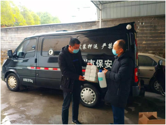 针对目前疫情防护物资极为紧缺的状况,公司疫情防控工作领导小组有效领导及组织,紧急采取措施,调动一切资源,在短时间内紧急采购一批医用口罩、84消毒液和体温测试仪,并及时邮寄配送下发至各守押大队,对无法送达的大队公司派管理人员亲自送往当地县城,这不仅确保了基层守押队员防疫物资的需求,也保障了各守押大队工作中的防护安全。
