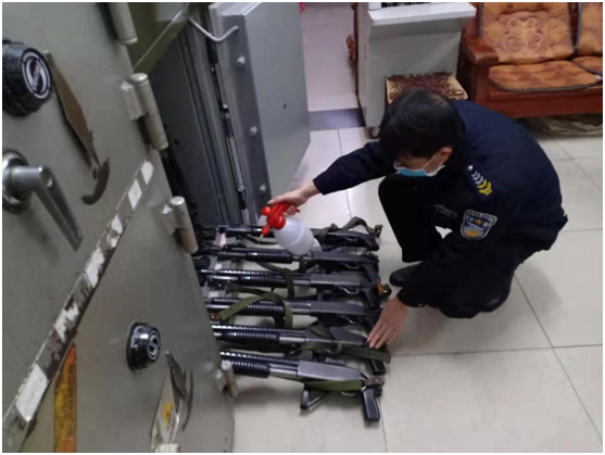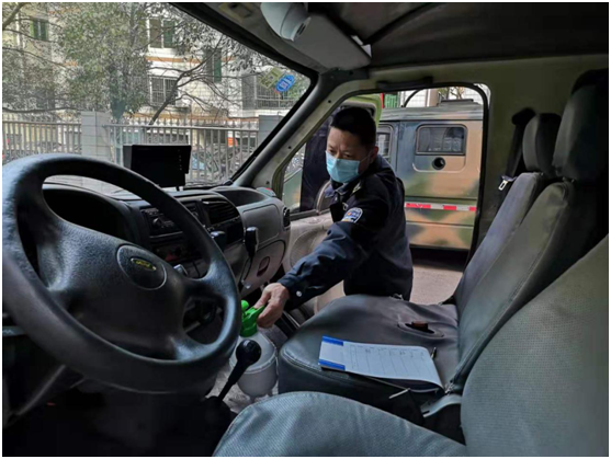 (对待命室、车辆、库房、枪支及公共区域进行全面消毒)