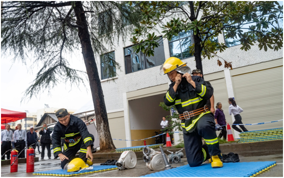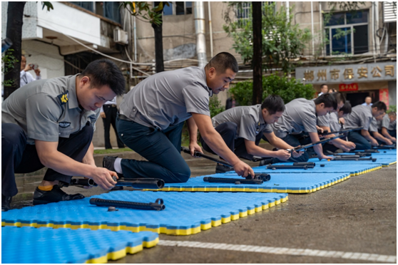 秋雨霏霏,浇不灭参赛队员高涨的热情。随着总指挥一声令下,竞赛正式开始。参赛选手们紧扣公安部《保安守护押运管理规定》和《保安武装押运服务安全操作指南》等规范要求,进行了枪支分解、消防灭火、反抢劫演练、实弹射击等应急项目竞赛。经过一个多小时的激烈角逐,安仁守押大队、邮政守押大队、永兴守押大队分别夺得团队一、二、三等奖,安仁大队刘清林获个人一等奖,邮政大队王俊、永兴大队曹桥峰获个人二等奖,安仁大队曹湘斌、邮政大队廖威、永兴大队曹连武获个人三等奖。