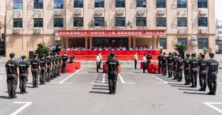 保安公司董事长陈应彬致欢迎词,回顾了公司武装守押二十年发展历程,并感谢各级领导、社会各届、客户单位、全体员工对公司的关心和支持。此次举办演练汇报会,目的是借湖南省第二届旅发大会召开和公司武装守押二十年相结合的时间点,根据公司工作性质和要求,以武装守押日常行为操作为指南,编排了系列表演和竞赛项目作演练汇报,从而进一步强化全体守押人员安全意识,按章操作的服务意识,提高处置突发事件的应变能力,展示公司良好的工作作风和品牌实力。