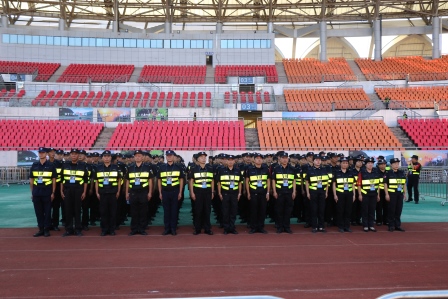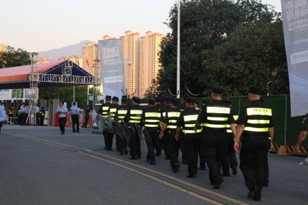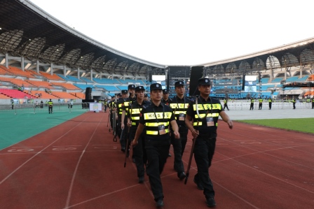 各执勤队伍按照公司统一安排,层层分解任务,按照“定人员、定区域、定任务、定责任”的基本要求,明确了每一位保安人员的工作职责和任务范围。全体保安人员提前到达岗位,熟悉现场环境,对周围路段、临时停车场车辆停放进行有序的指挥,配合相关部门维护外围和检票入口的安检工作,积极为观众提供解答和帮助,引导观众快速有序入场。