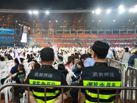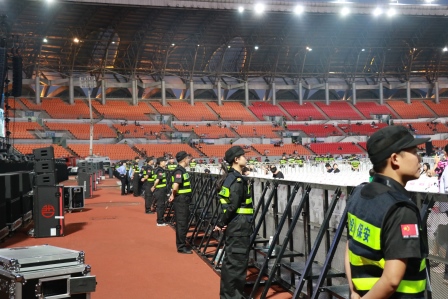 为切实做好演唱会安全保卫工作,永兴集团yx08公司提前2个月进行部署,成立演唱会现场安全保卫工作指挥部,结合任务区域划分,组织骨干力量多次进行现场踏查,精心制定了详细周全的安保工作方案。从会场外围的管制到内场的控场疏导,以及消防的应急措施等等都进行了严密的部署,分成指挥协调组、舞台区安保组、场内巡视组、外围安保组、机动巡查组等81个安保小组,细分安全保卫工作,为演唱会的安全顺利进行构筑一道牢固的安全保卫墙。
