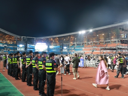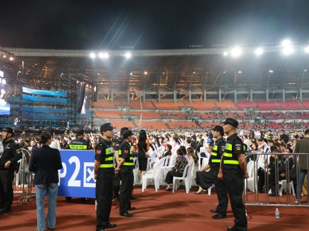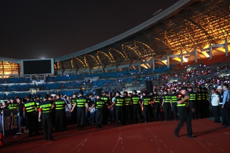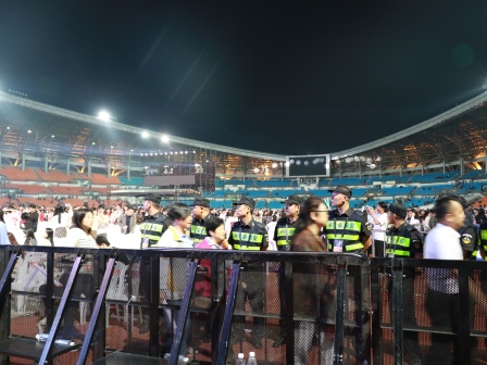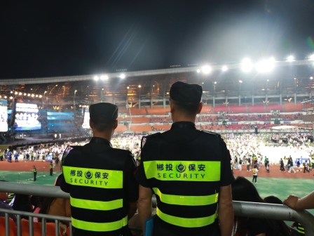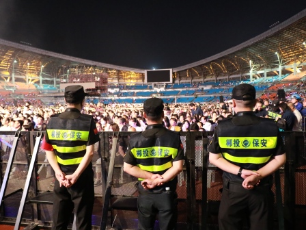 活动结束后,安保人员护送群星有序离场,引导观众就近通往安全出口。在长达10小时的执勤保障过程中,保安公司的全体安保人员不畏艰辛,坚守岗位,各司其职、精诚合作,圆满完成了此次群星演唱会安保活动,受到主办单位、演员和观众的一致认可,展现了永兴集团yx08公司强大的安保能力及优良的精神风貌!