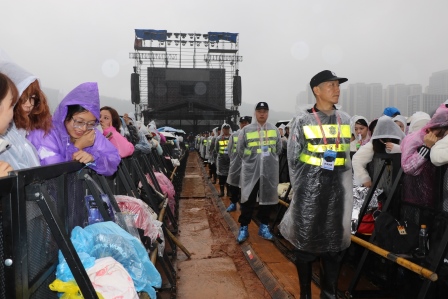 气温骤降、阴雨连连,全体安保成员克服阴雨绵绵、执勤时间长等困难,始终保持高昂斗志和饱满热情,坚守岗位、认真履职,认真落实各项安保措施,用自己的“辛苦指数”,为音乐节赢得“成功指数”,换取了观众的“安全指数”,以实际行动书写责任,诠释担当。
