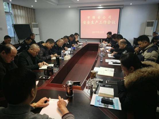 郴州市保安公司于12月15日召开了“郴州市保安公司安全生产工作会议”暨“交通安全警示教育会议”,会议由公司总经理马建辉主持。会上,各部门分管领导就各部门日常工作中存在的主要问题及原因进行了通报和点评,对下一步安全工作进行了安排并提出相应的要求,总经理马建辉对公司安全生产工作进行了点评并对下一步工作进行部署。马总指出,安全工作是公司各项工作的重中之中,要始终把安全防范工作作为重点,要未雨绸缪、提早布置,不断完善安全制度,有效防范风险,切实增强安全意识,落实安全责任。在工作中切实将安全生产工作要求和工作目标任务落到实处,将“抓安全、严管理、树形象、优服务”的理念转化到工作中,确保守押工作安全,确保各项目标任务的圆满完成。
