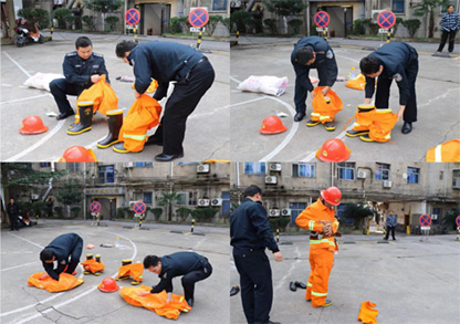 培训结束后,现场进行实地模拟大楼起火如何快速有序逃离火场的疏散实操演练以及现场指导消防器材使用、消防衣的穿戴方法和正确使用灭火器灭火操作流程。参与演练的员工纷纷亲身体验了使用灭火器以及消火栓对虚拟着火点进行灭火的过程。