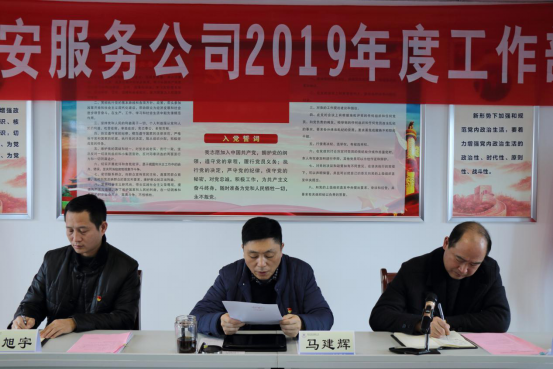 随后,党支部书记、总经理马建辉对公司2019年度工作作总体部署:一是抓业务促发展;二是抓活动保安全;三是抓培训提素质;四是抓管理树形象;五是抓收入节开支;六是抓党建促管理;七是抓改制保稳定;八是凝心聚力关爱员工。